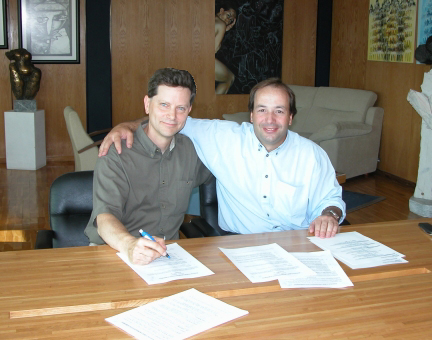 Jack Elder - President of Multiject LLC. and Paulo Silva - President of Plasdan Group signing representation agreement in Portugal Plasdan provides a complete solution for multi-material molding - shown is a conversion package for a conventional single-shot press to three-material molding. Shown is a double hydraulic injection unit, a three station servo rotary table, and a three material injection mold. All device controls are integrated into the displayed controller (injection units, rotary table, mold safeties, valve gates, and hot runners). Plasdan products for the injection molding industry are available through Multiject LLC in North America.